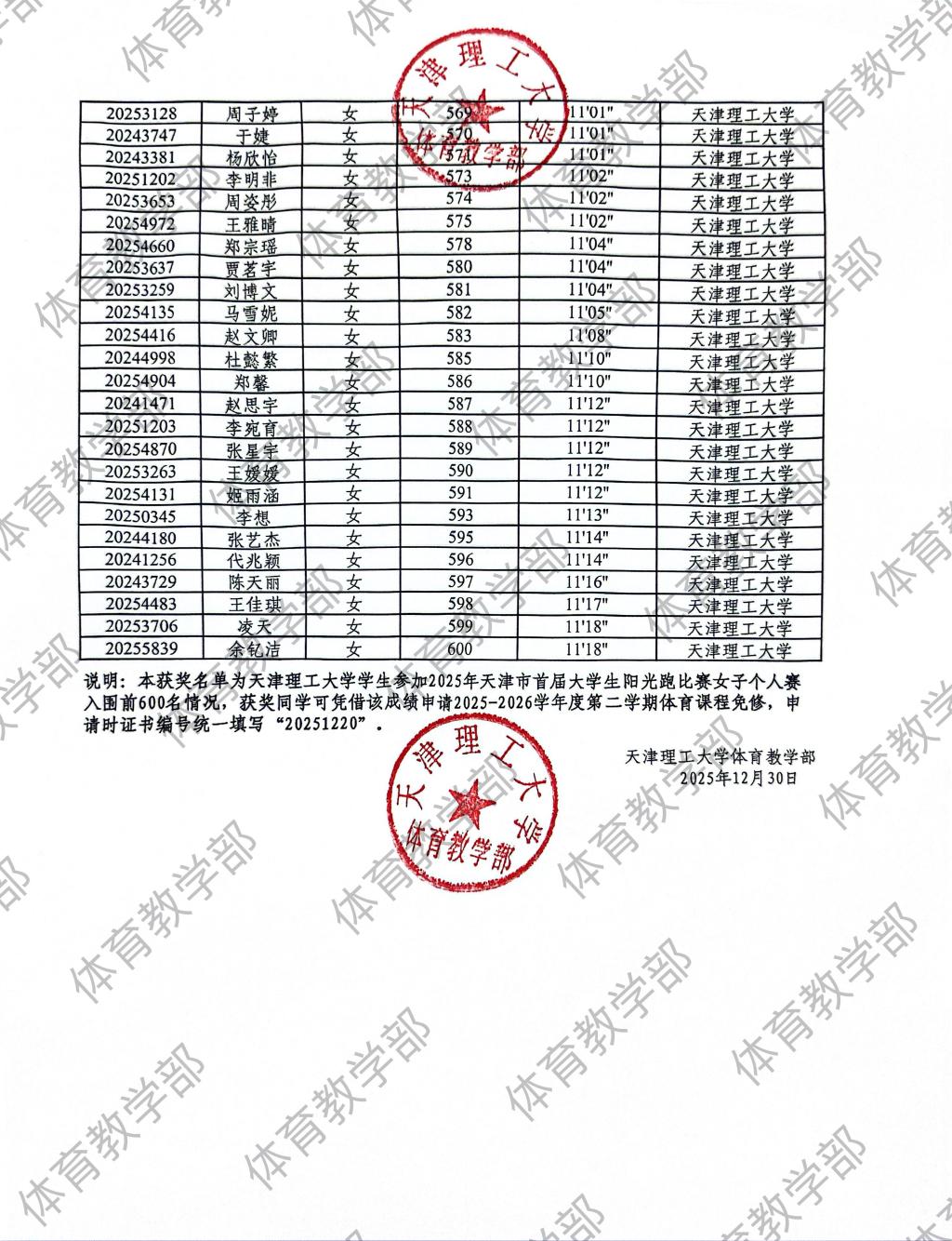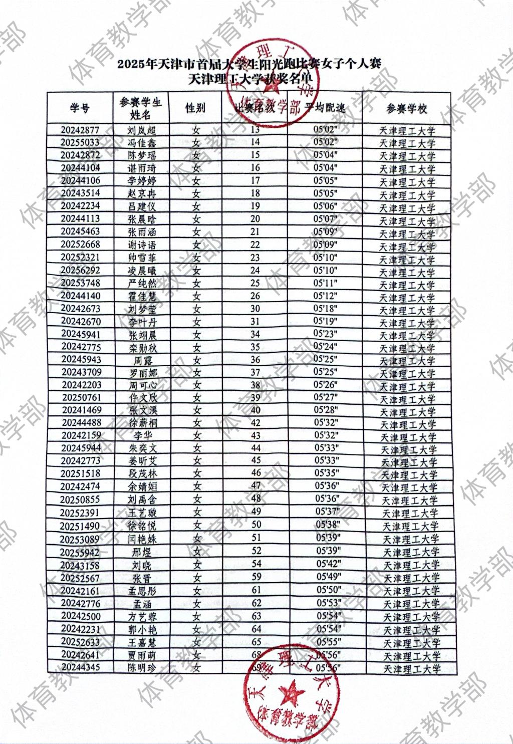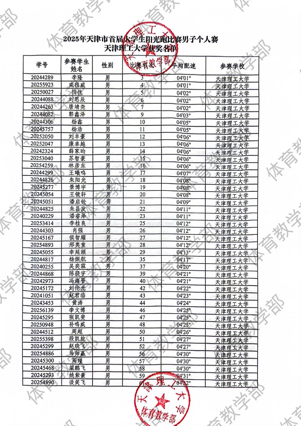 2025年天津市首届大学生阳光跑比赛男子个人赛和女子个人赛天津理工大学获奖名单