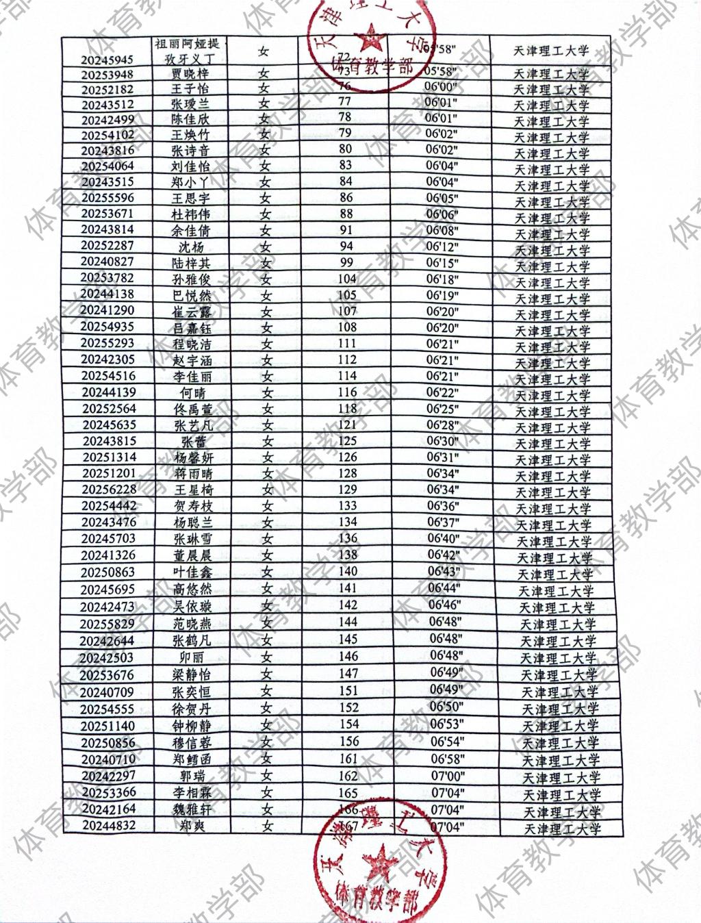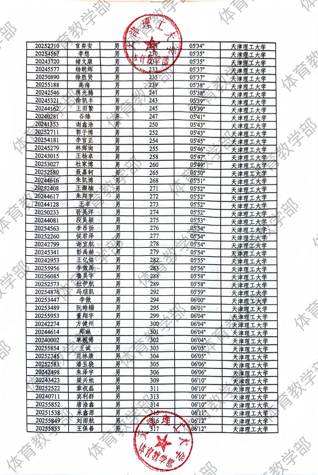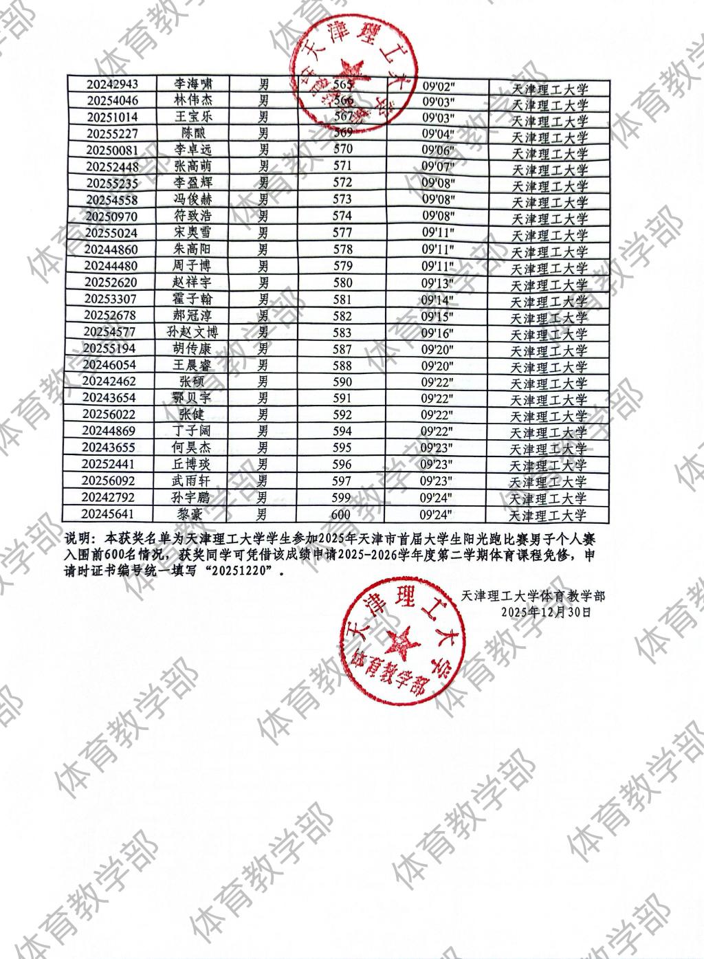 2025年天津市首届大学生阳光跑比赛男子个人赛和女子个人赛天津理工大学获奖名单